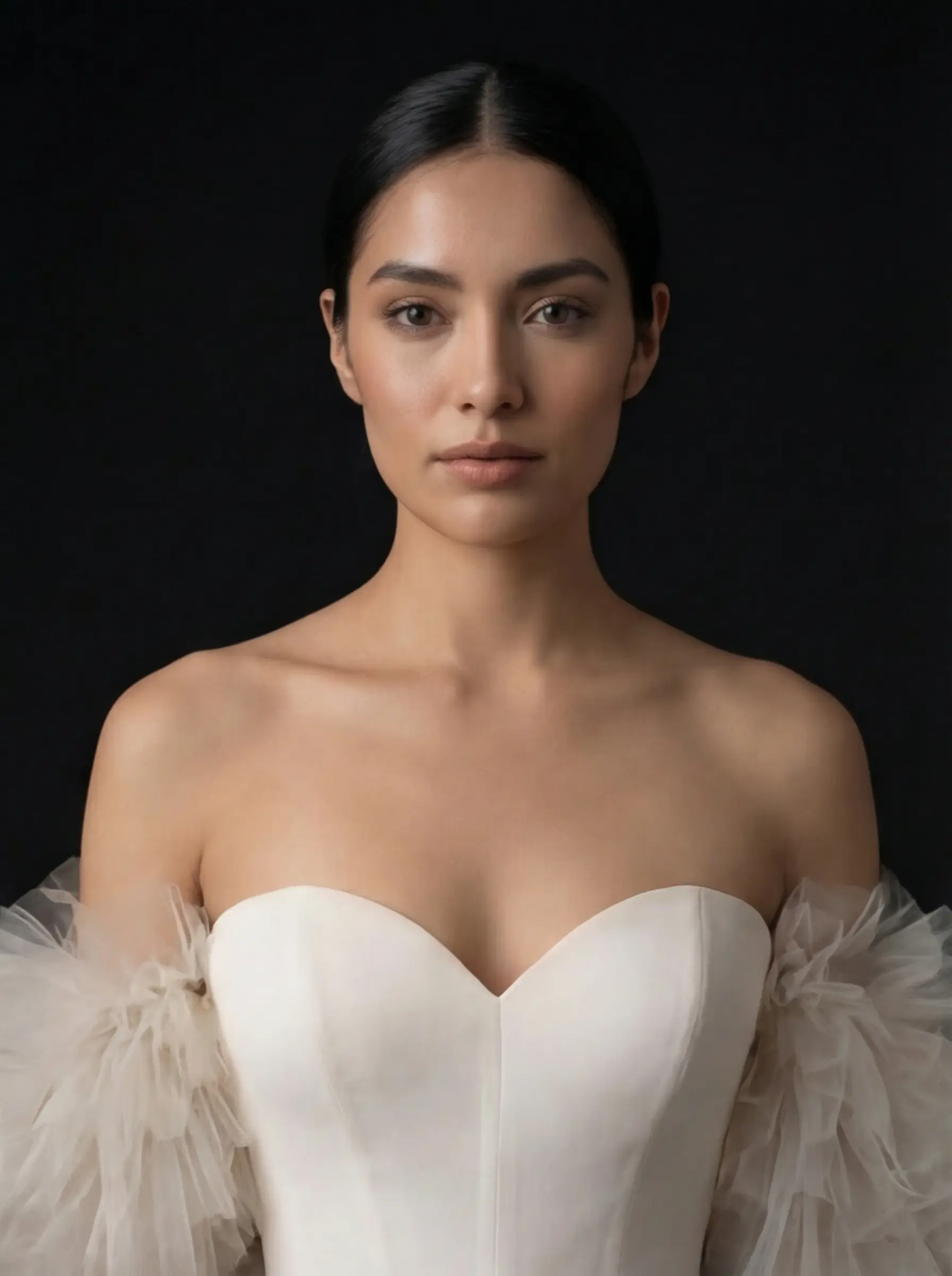 Esta selección nos permite garantizar una estabilidad cromática absoluta, estructuras de volumen arquitectónico y la caída refinada que solo una fibra natural de este nivel puede ofrecer. En nuestro atelier, el vestido no solo se diseña; se construye con intención desde el hilo.