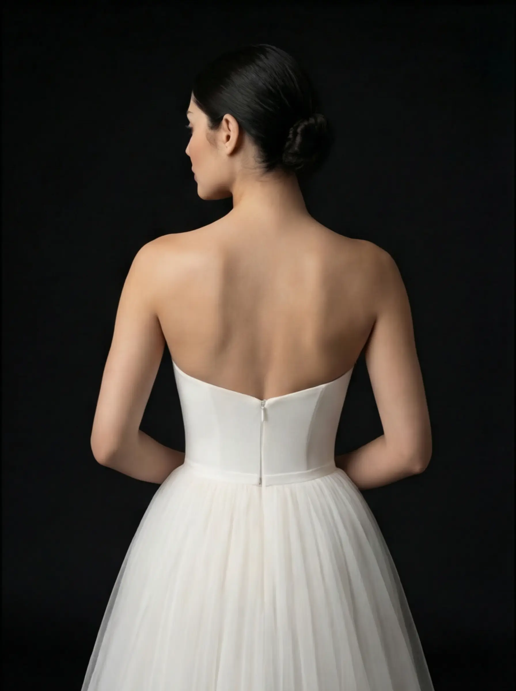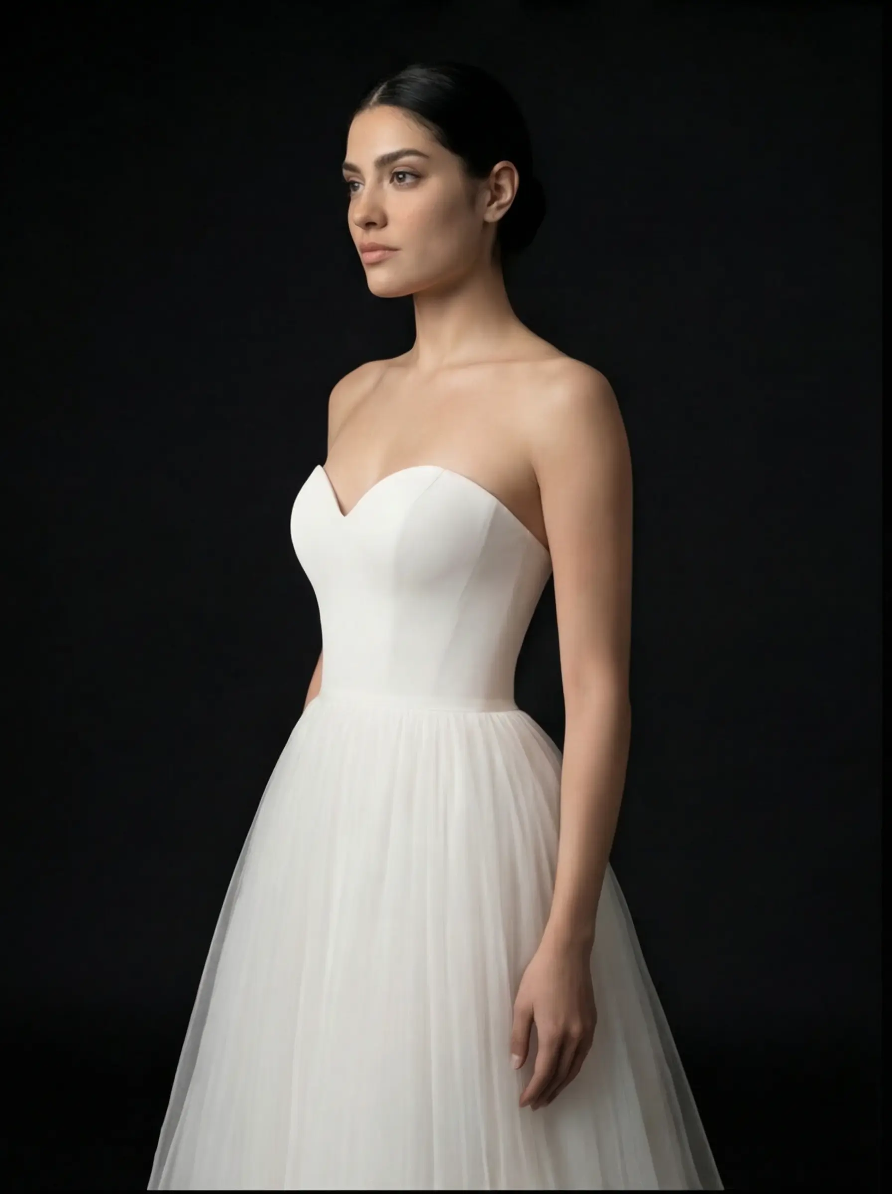 Escote corazón strapless de trazo definido y acabado minimal.